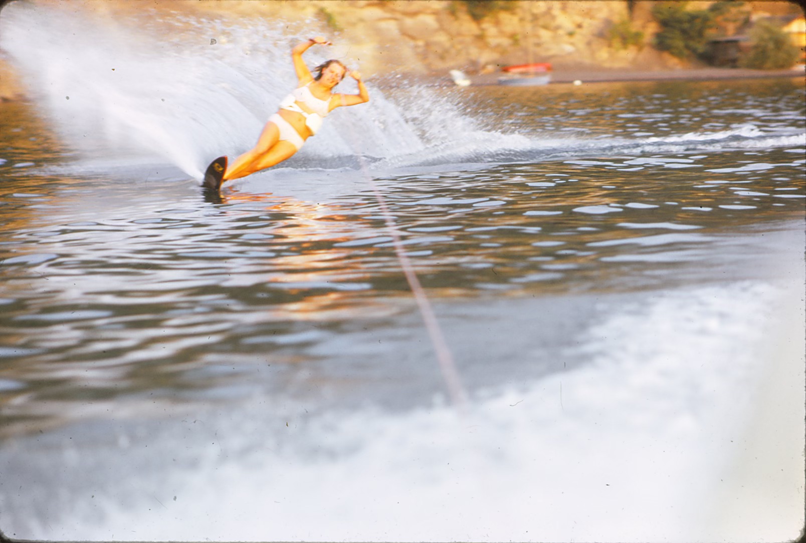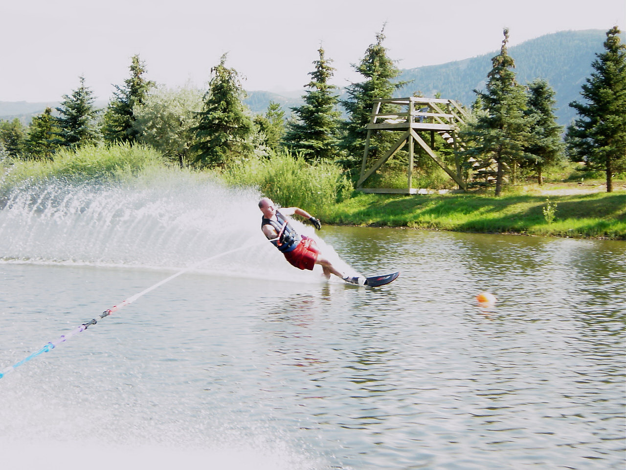 Earl (Aspen) our very close friend below ripping the buoy ( far more recent photo) Earl skies to about 28 or into the 30’s of line off.  this is amazing