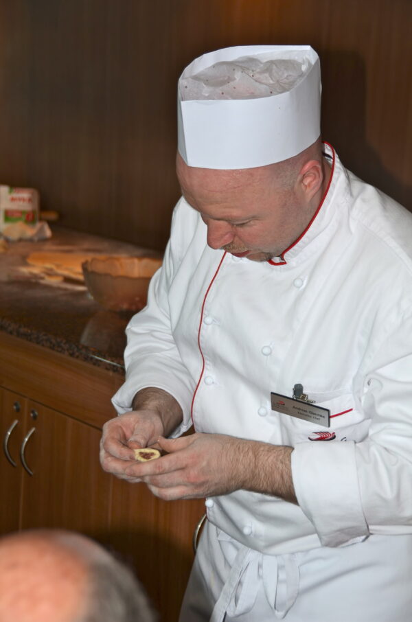 Another evening we had a food preparation and cooking class given by the head chef (masters in food and hotel) below.