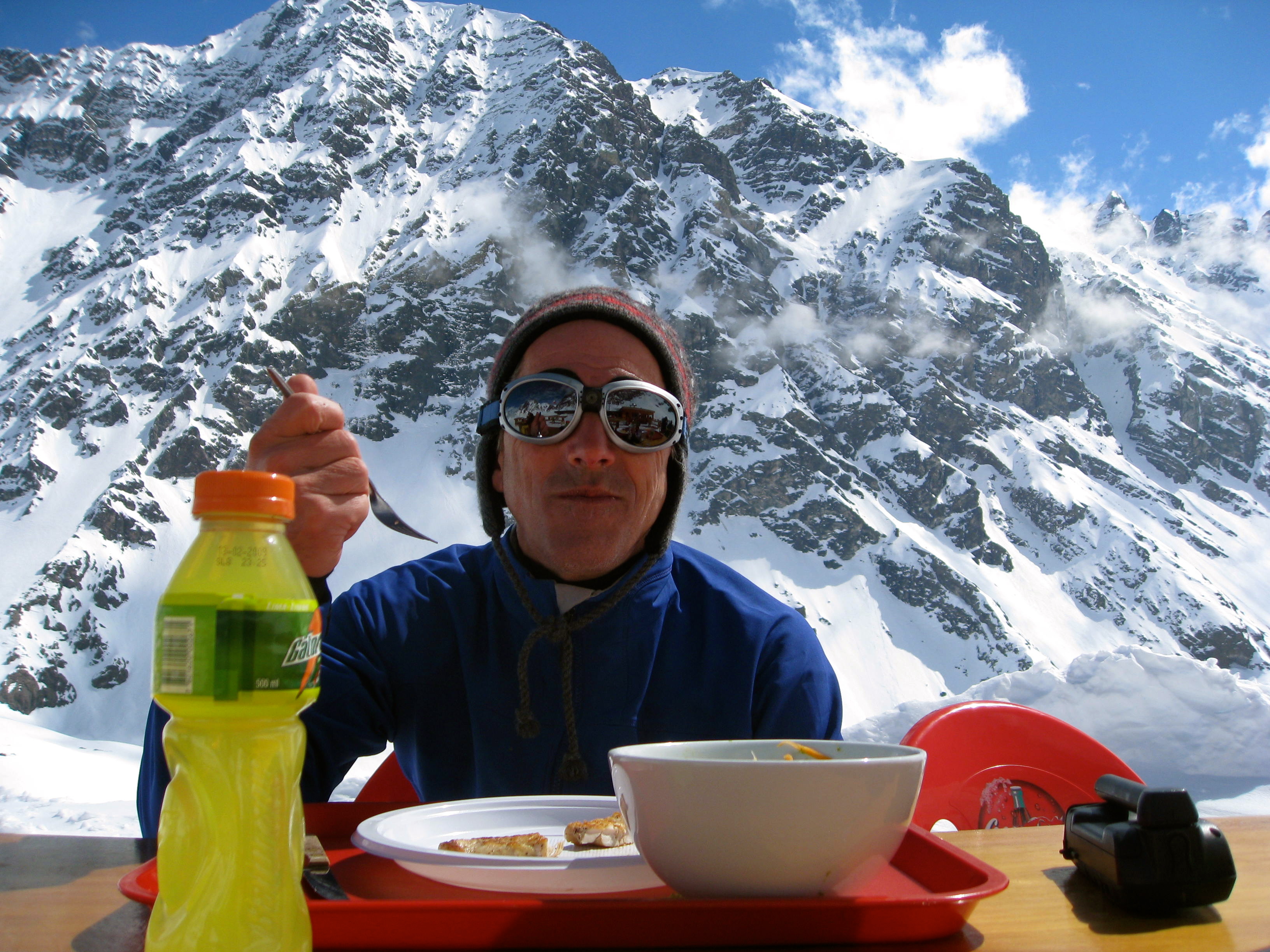 Imagine climbing up a narrow rocky ridge line whose rocks peak through the untouched pristine snow and glistening ice. Then imagine trekking across an upward sloping snowfield to the top of Mt — and then looking over the grand mountains below covered in a sea of white snow as well as the verdant valley floor that snakes its way between the mountain side. It is awesome to stand above it all in a sea of white powdery snow. Imagine the warm sun splashing your face in golden hues, and your eyes blinded by a kaleidoscope of refracted colors through the pristine snow while the wind brings sweet melodies to the mind and the sight of green velvet that covers the valley floor below brings a note that spring is around the corner. One then drifts to the edge of the precipitous cliff on their skis and drops off the ledge and like a floating leaf, sails downward between the rock walls to the slopes below. The heavens sing on the descent and it is magical. The blue sky above the earth, White clouds rising towards the heavens, Life is only the butterflies dream, Death is the only way to eternal Life- fear not my children!!