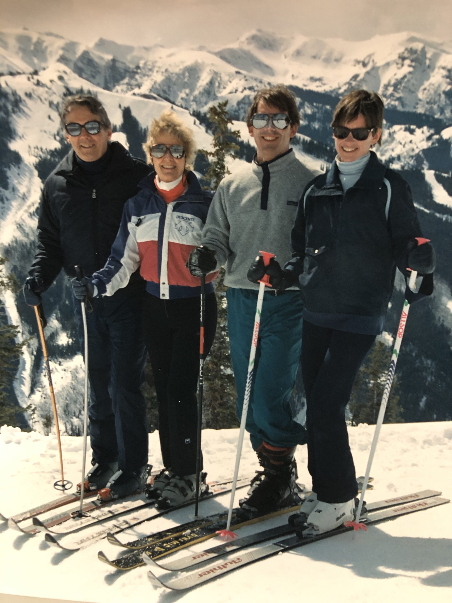 l Love to ski. Wind in the face, skis flying over the ice and snow, racing ever so fast an trying to keep it all together. Have skied: Zermatt, Bad Shools, Portillo, Aspen below with mom dad and Aden ripping it up