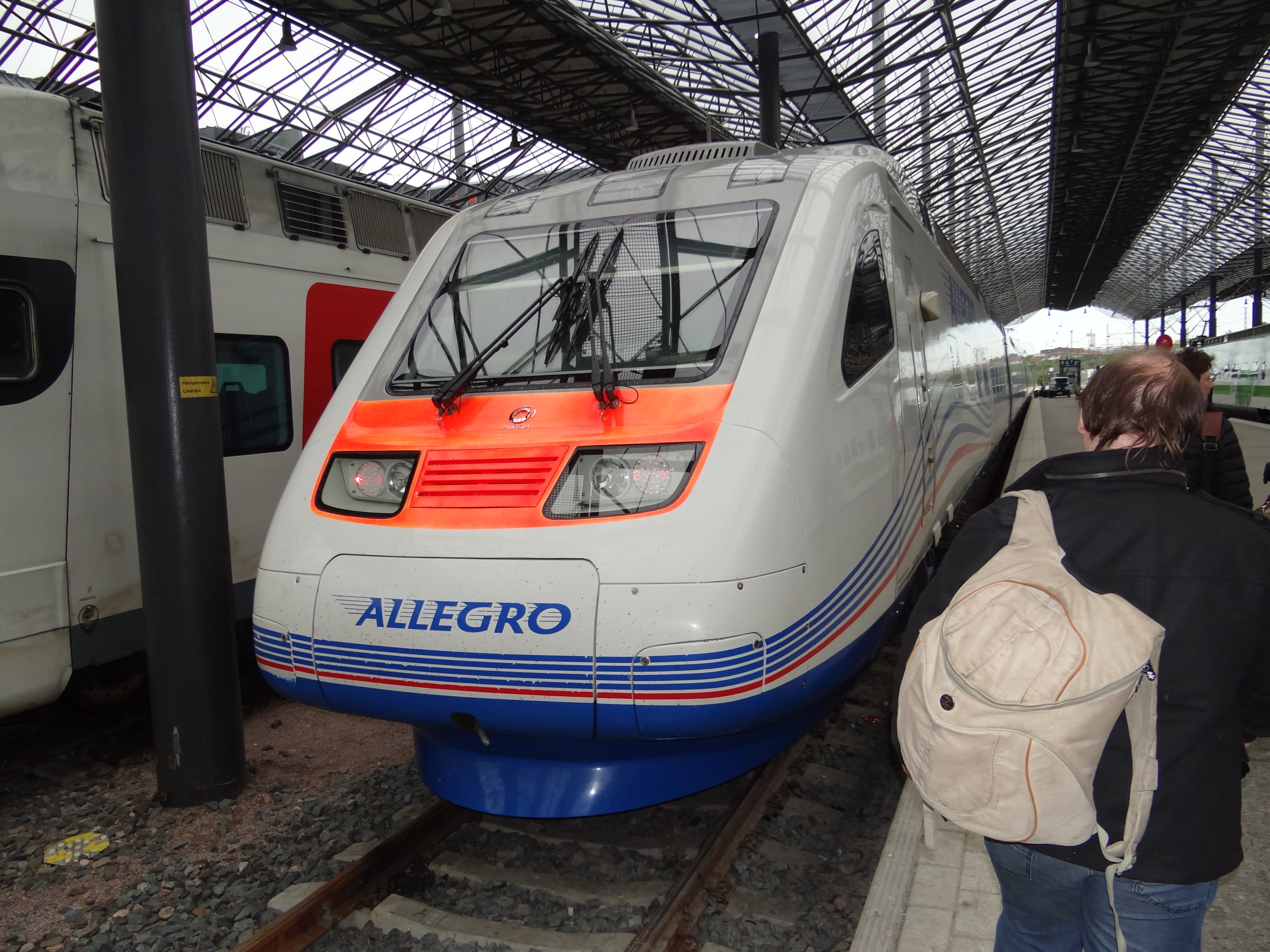 The Helsinki train station above was like a Museum with food vendors and really clean and efficient.  Operated by a joint venture between the state railways of Finland and Russia, the high speed trains from Helsinki to St Petersburg, also called the Allegro, use an advanced version of the Alstom “electric multiple unit” used on Finnish railway lines, designed the Sm6. Each car in this type of train has its own locomotion, the combined power of which allows it to move unusually fast, speeding up and slowing down much more safely.