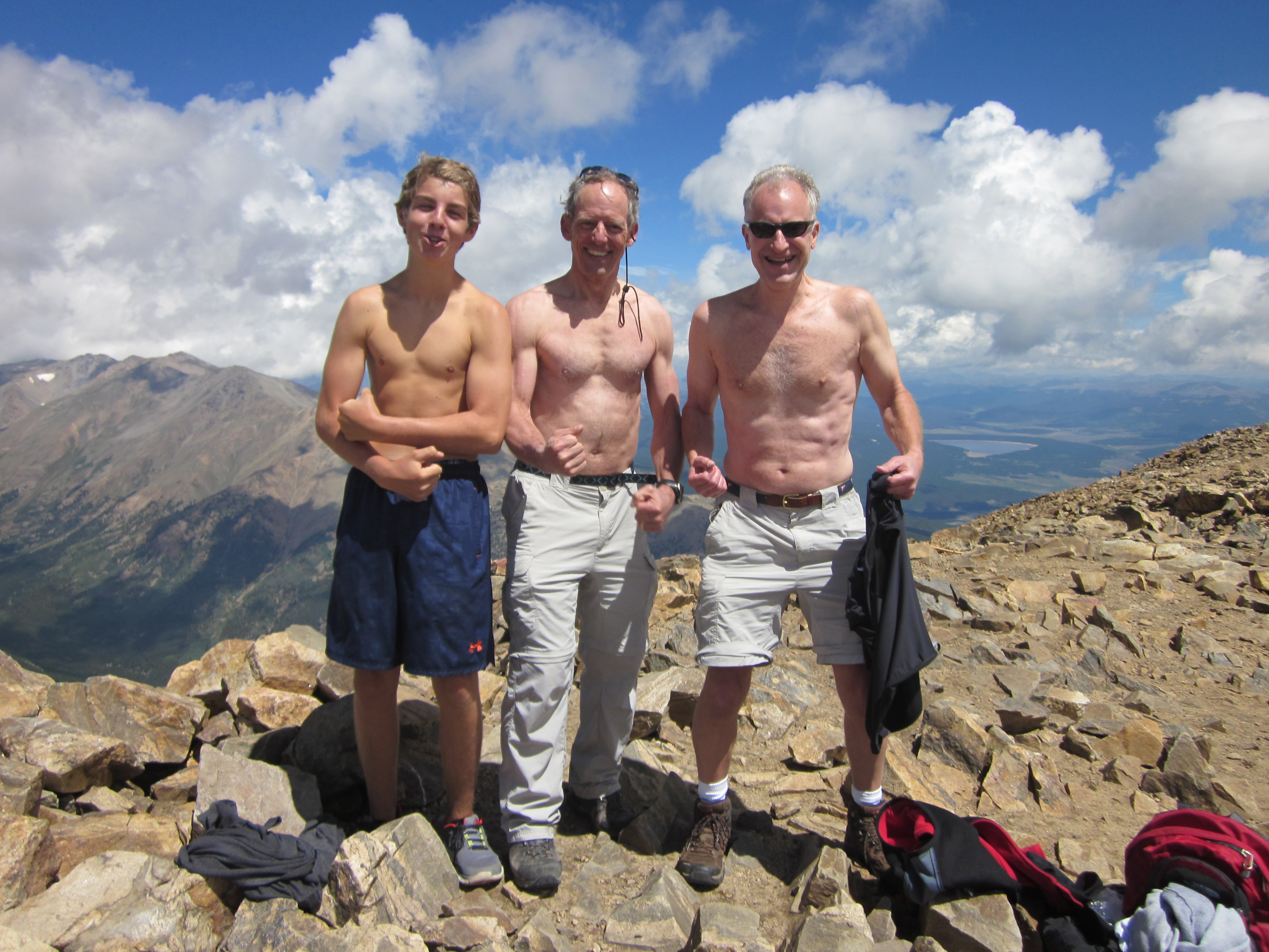 We try to avoid starting new trails and stick to the established path to minimize impact. Tree line is at approximately 12,000 ft; therefore, you have about 2400 ft of climbing in weather-exposed terrain. This is us at about 12,000 feet “above tree line” During the summer months, violent thunderstorms are a daily occurrence. We always plan to be off the summit or ridges by early afternoon to avoid lightning danger. Start very early and allow 6-8 hours for climb and descent. This is a 4,800 foot climb over 10 miles round trip wow smoking cool!!!