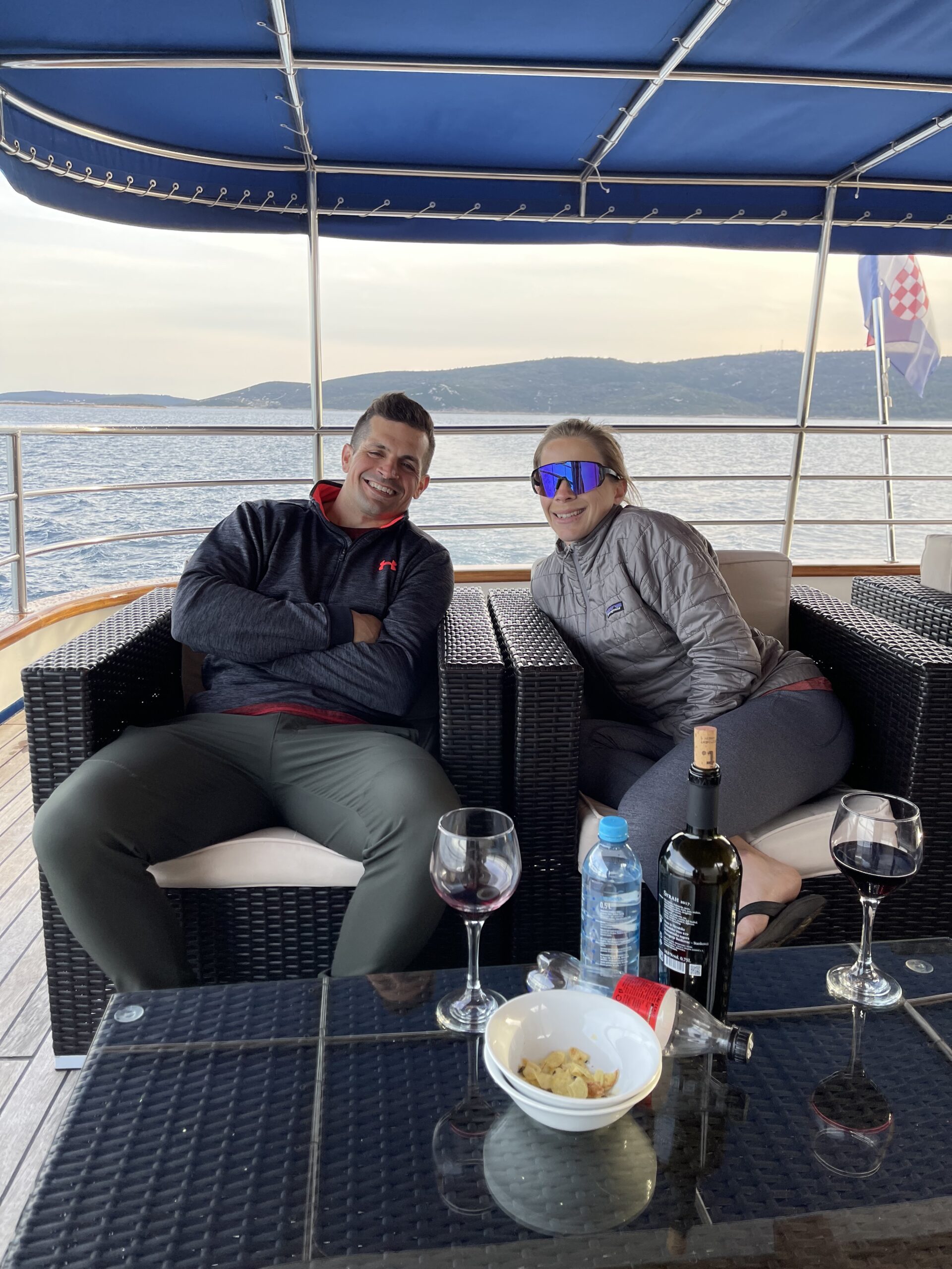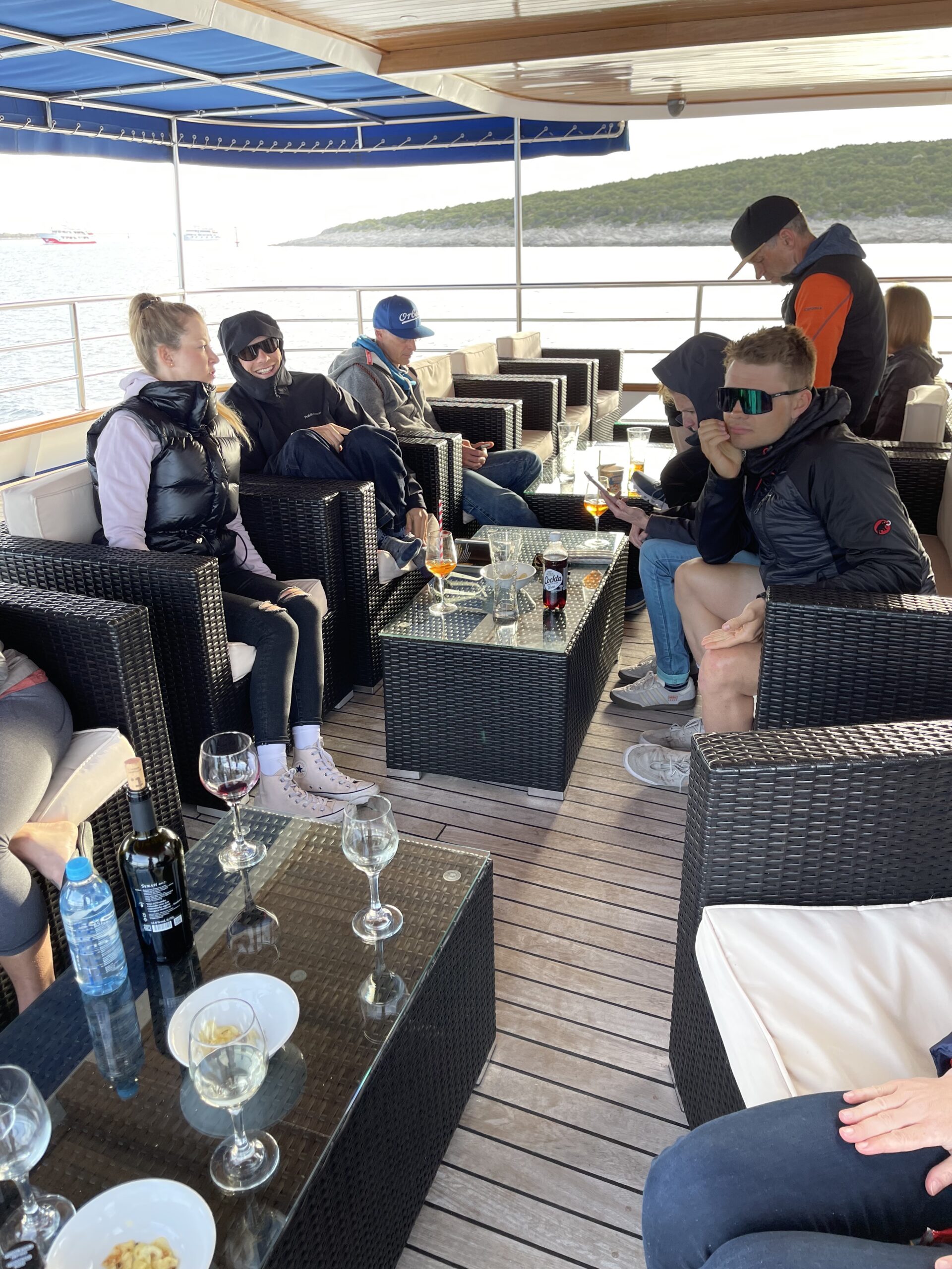 The rooms and food were great on the boat and we had a little too much wine after a hard days bike race in the mountains