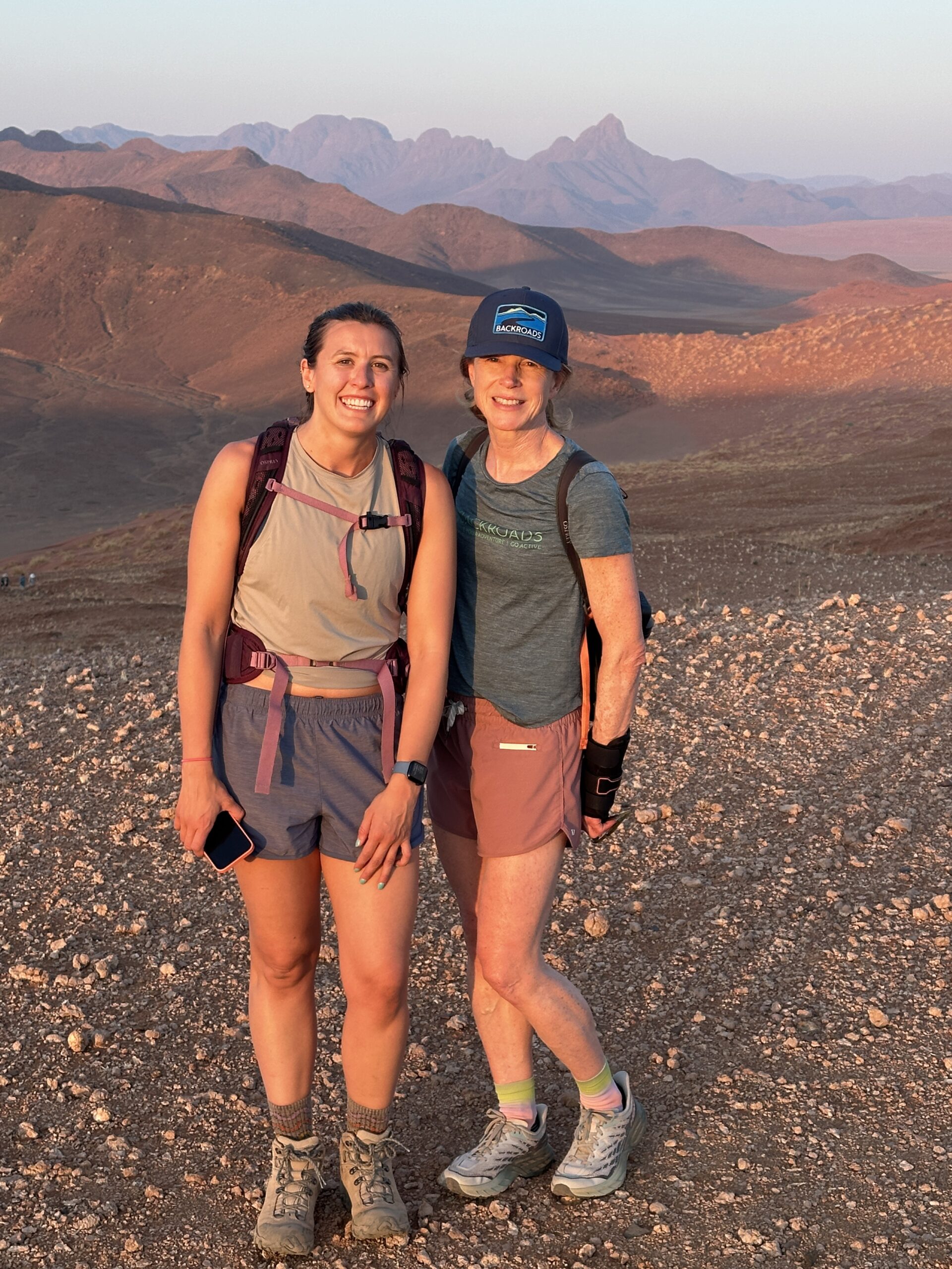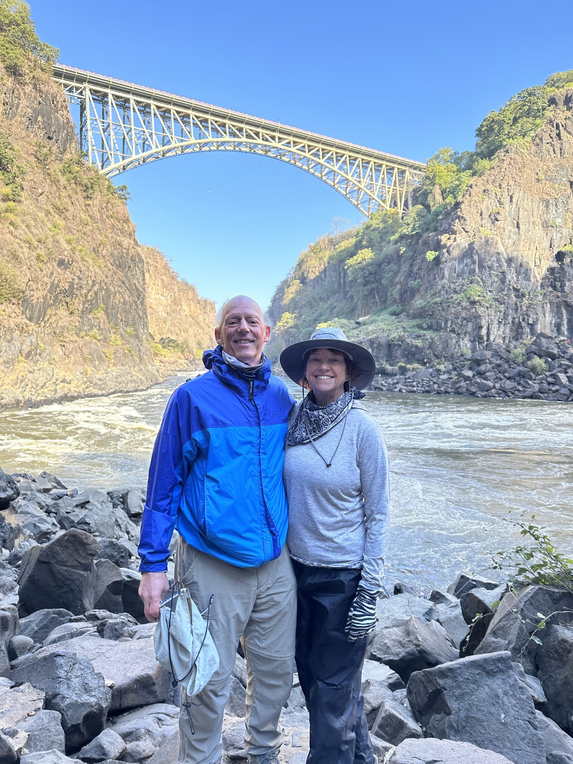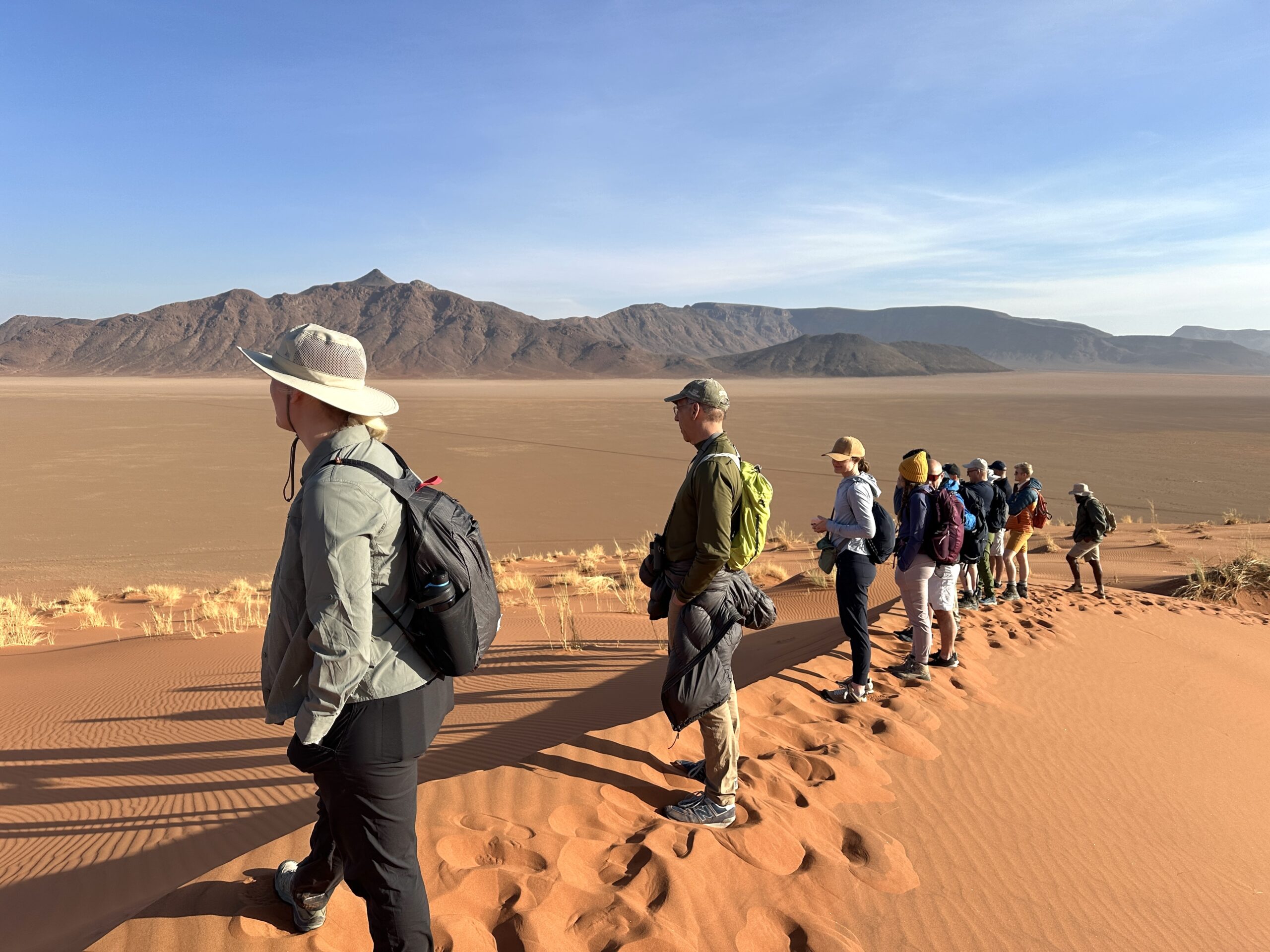 This trip to three African countries: Namibia, Botswana and Zambia was provided by Backroads and “Backroads” exceeded our expectations. Some of us ended up in Zimbabwe and had a day there and I bungee jumped off the Victoria Falls bridge 360 feet wow. Of from the start and each country below on tabs to left show more detail. Again Backroads provided this trip and it exceeded everyone’s expectations from the safaris to the hiking, biking, boating and the hotels and food and guides and team leaders were amazing. ok a brief overview on Namibia. Our Team Leaders below: Eli and Eliav below were awesome and inspiring