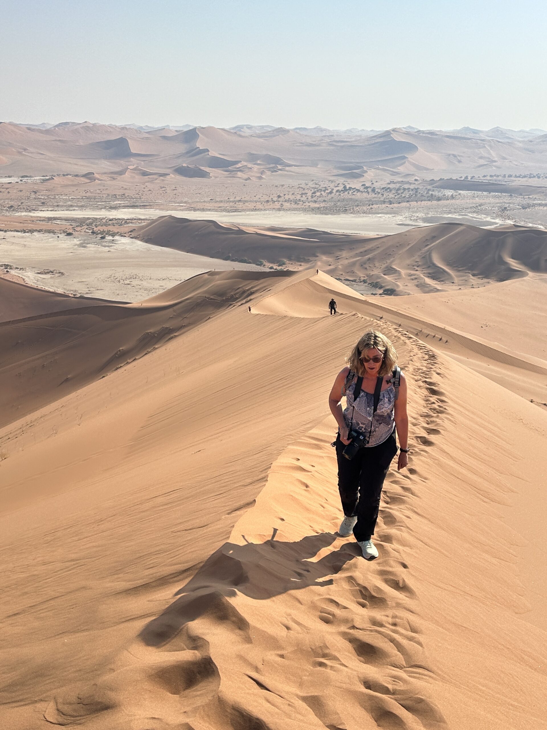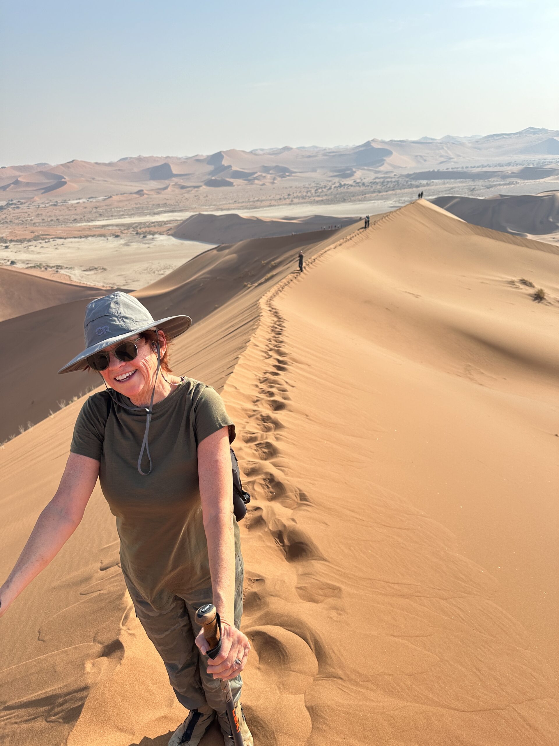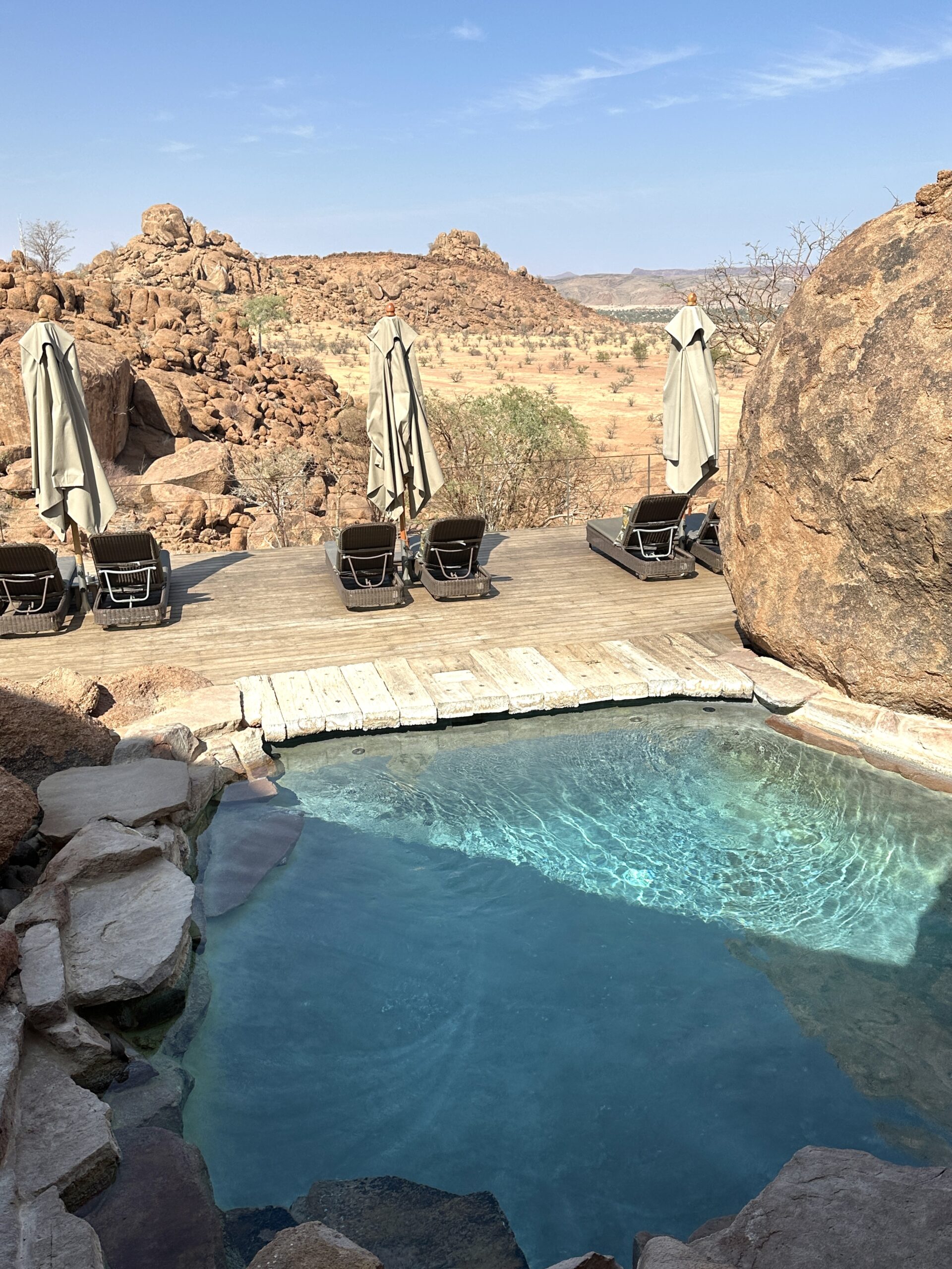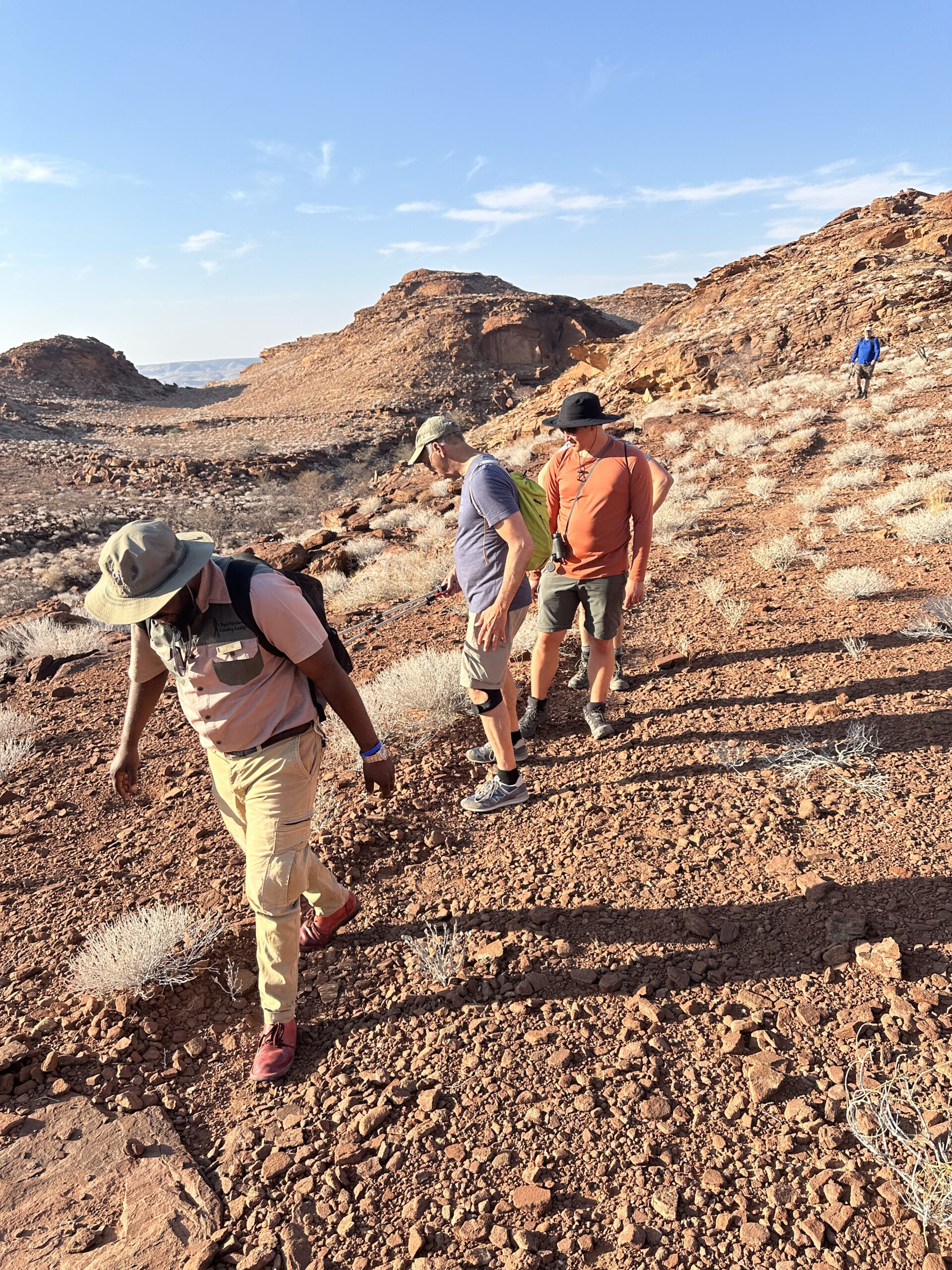 From here on day 2 on a private plane our small group traveled to the Sossusvlei Desert lodge which is And Beyond Sossusviel Desert Lodge which was amazing and we hiked about a total of 7 miles and one hike took us to a Bushman’s cave in the mountain.