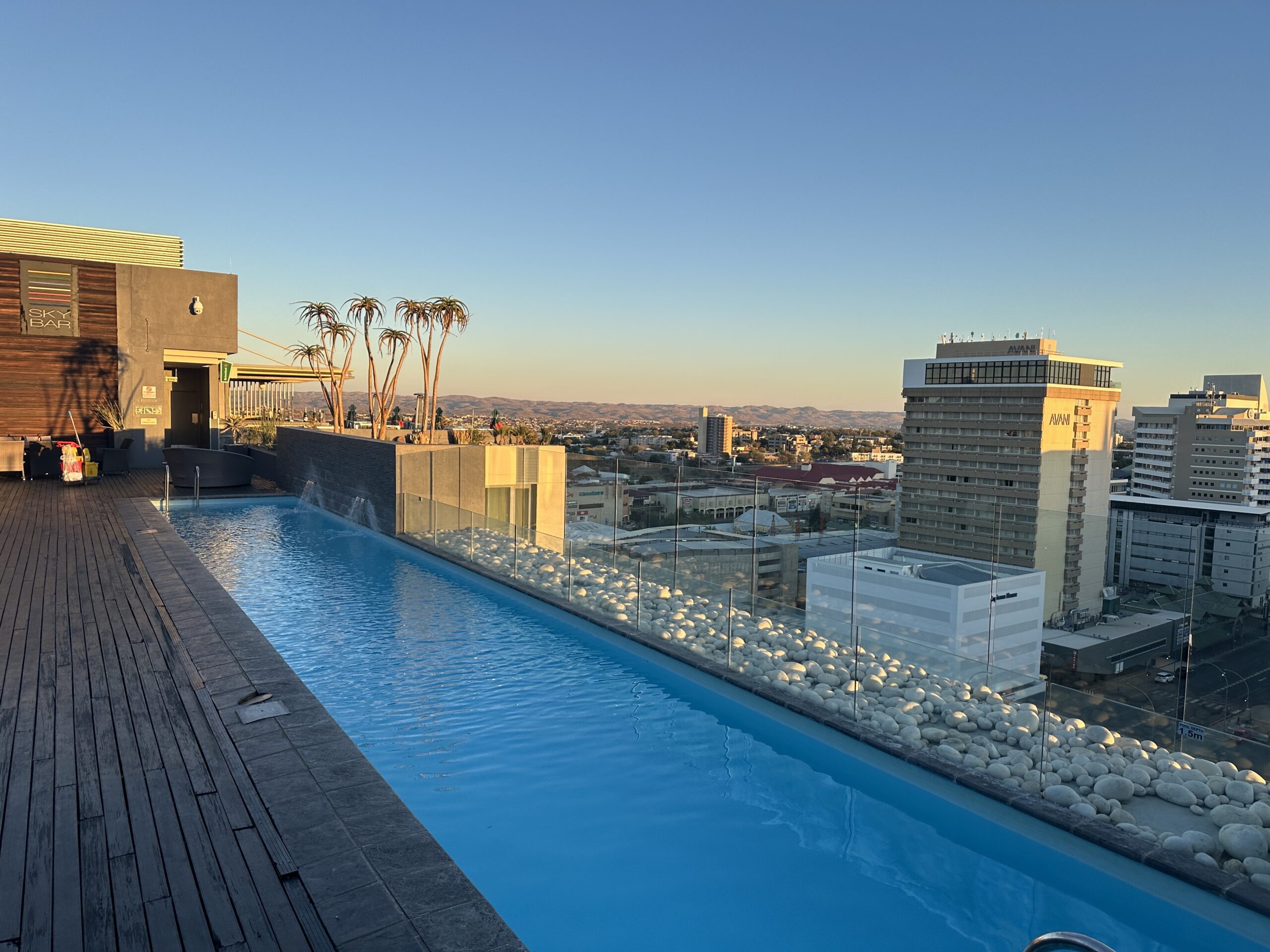 Namibia: We started in Windhoek staying in the great Hilton Hotel and a photo from our hotel below.