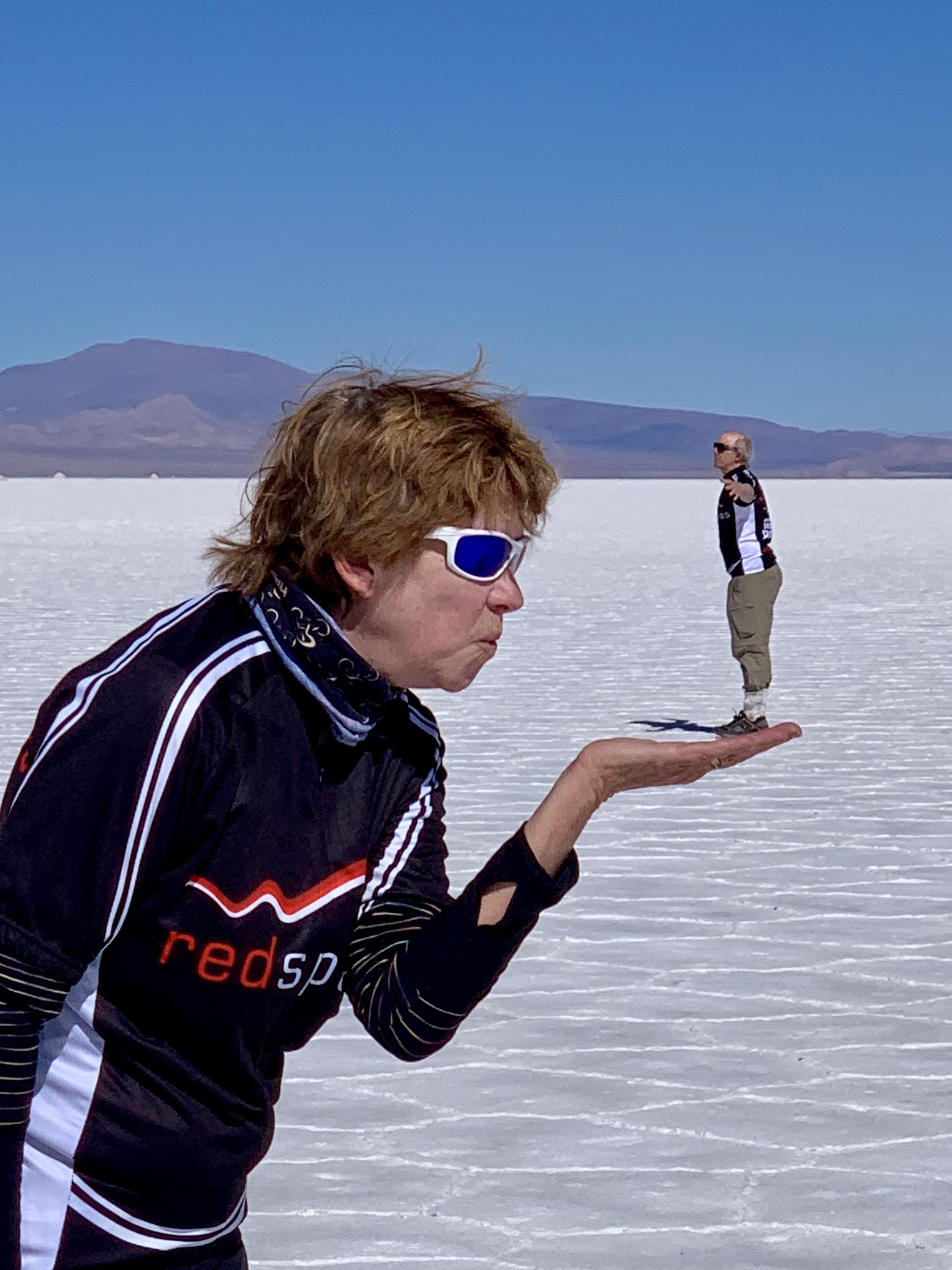 and salt plains. We rode through dramatic ravines, the Andean puna and dazzling white salt flats under cobalt blue skies.